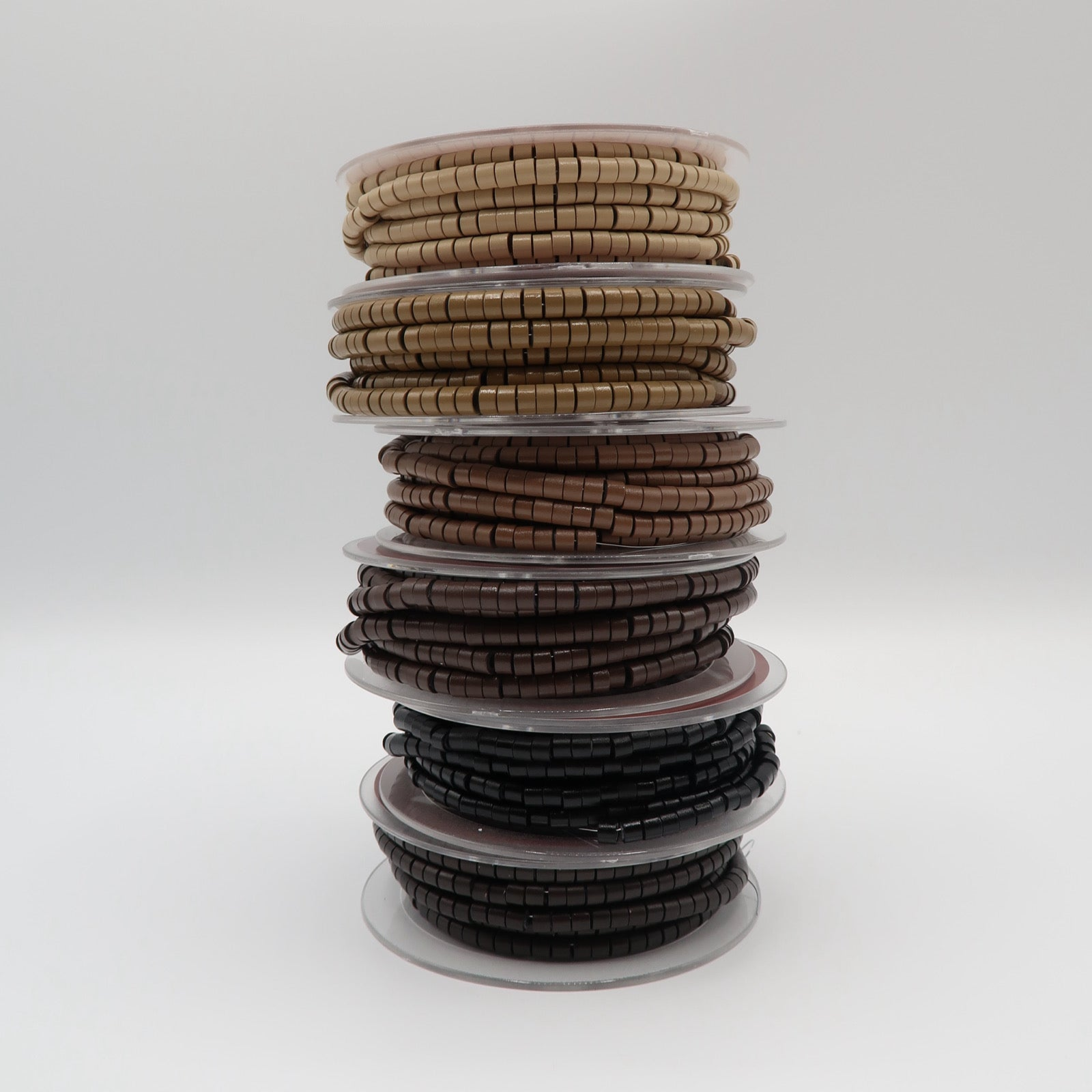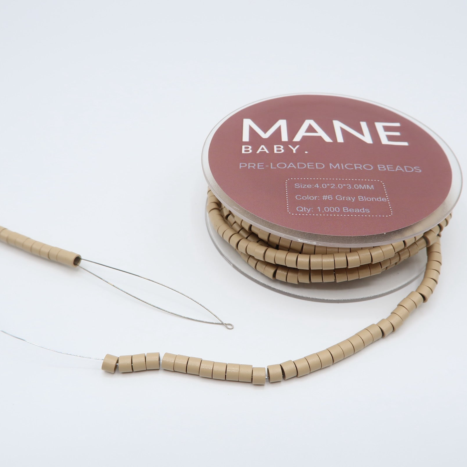 Pre-loaded on a wire reel so you can easily slide them on to your bead threader saving precious time in salon! No more fumbling trying to pick up the beads to load them on. Available in two sizes - small for fine hair and large for thicker hair or bigger sections.